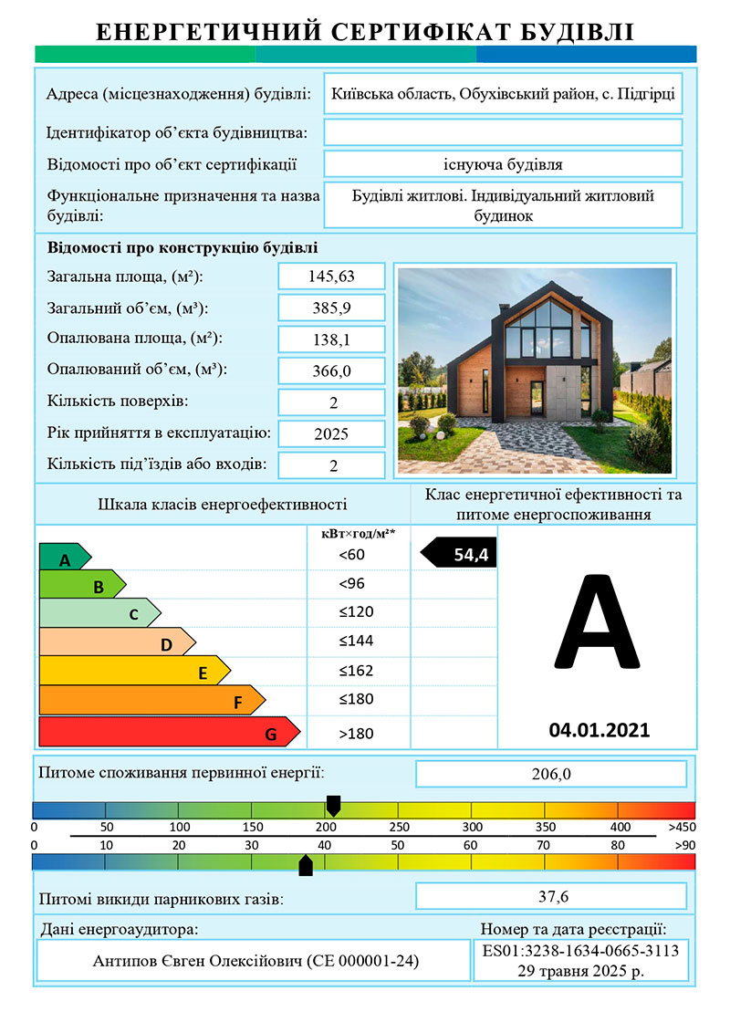 Отримано: Офіційний Енергетичний Сертифікат класу “А”